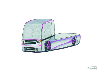 【講評】キャビンとデッキが一体になり、大変すっきりキレイにまとめられている。そのデッキに用途に合わせて乗せかえることが出来きるバンタイプ、ダンプ仕様やタンクローリータイプなどを取り替えることが出来中学生らしく柔軟な発想で、名前もそれぞれのコンセプトにあわせてデザインされ、細部まで手を抜くことなくマトメられている点など評価された。