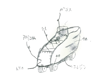 【講評】自動車と共通の要素を持つ移動のための道具で、大変身近な靴を造形テーマに取り入れ、ミッドシップエンジンを床下に配し、フロントエンドにはトランクを設けるなど、正に高級スポーツカーである。全体にはかわいい表情を出し、皮の柔らかそうな外板に、靴紐もアクセサリーに取り入れるなどほのぼのしたユニークな表情を出している点が評価された。