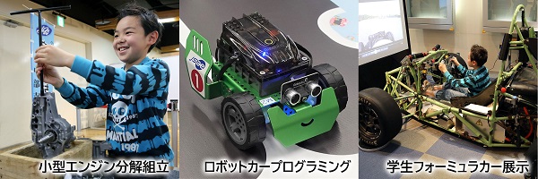 「小型エンジン分解組立」「ロボットカープログラミング」の 2つの子供向け教室と、
